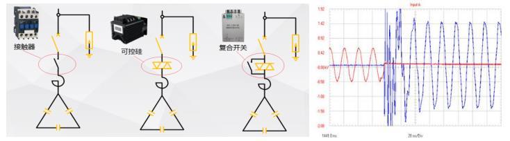 نظرًا لحقيقة أن تحويل المكثفات المتوازية في الأوقات السابقة قد تحقق من خلال الموصلات ، والتي لها وقت استجابة على مقياس المستوى الثاني ، كان العائق القاتل هو تيار الاندفاع الكبير أثناء التبديل. في الحالات الشديدة ، يمكن أن يصل إلى 50-100 مرة من التيار المقنن لمكثف التعويض ، مما يؤدي إلى ضوء قوس كبير ويسبب تلفًا للمكثفات والموصلات. بناءً على التشغيل الفعلي للأحمال في الموقع ، ظهرت بدائل للكونتاتور مثل المفاتيح المتزامنة والمفاتيح الهجينة ومفاتيح الثايرستور تدريجياً في السوق. لقد تحسنت هذه البدائل بشكل كبير عند التبديل عند مستوى الجهد الصفري والانقطاع عند التيار الصفري ، مما يقلل بشكل كبير من تلف المعدات الناجم عن تبديل تيار الاندفاع.