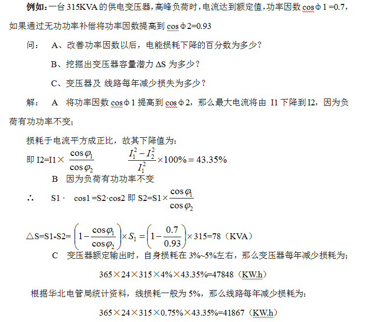 في حالة عدم وجود قدرة كافية في المحولات والخطوط ، يمكن استخدام طريقة تركيب أجهزة تعويض الطاقة التفاعلية. يمكن أن يؤدي تركيب أجهزة تعويض الطاقة التفاعلية إلى موازنة الطاقة التفاعلية محليًا ، وتقليل تدفق التيار عبر الخطوط والمحولات ، وإبطاء سرعة الشيخوخة لعزل الأسلاك والمحولات ، وإطالة عمر الخدمة. في الوقت نفسه ، يمكن أن تطلق قدرة المحولات والخطوط ، مما يزيد من قدرتها على حمل الحمولة. على سبيل المثال ، مع محول 100 كيلو فولت أمبير يعمل حاليًا بحمل 805 ٪ مع كوزافي من 0.7 ، يمكن أن يؤدي تركيب معدات تعويض الطاقة التفاعلية إلى زيادة سعة حمل المحول بنسبة 30 ٪. يمكن للمستخدمين زيادة حمولتهم دون توسيع السعة لتسهيل المزيد من التوسع في الإنتاج.