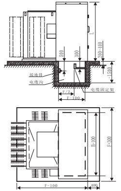أ. يتم تركيب التجميع على قاعدة خرسانية بارتفاع 100-400 من الأرض يكفي لتحمل وزن التجميع. يظهر الرسم البياني للحجم الموصى به لحجم التجميع والقاعدة في الملحق 1.