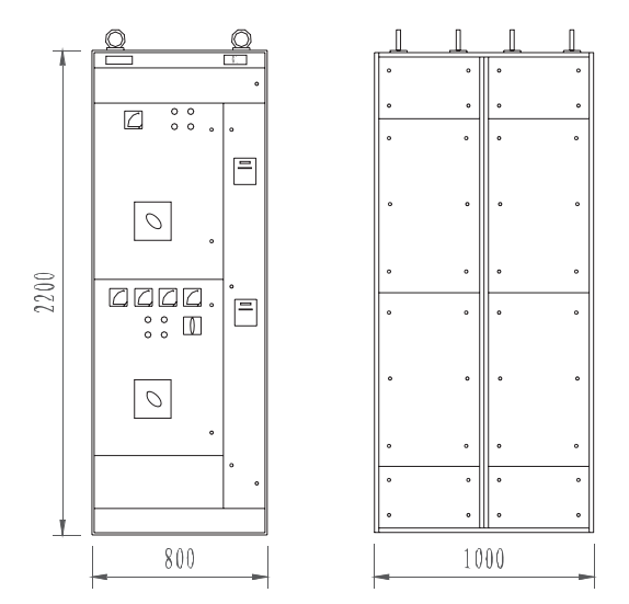 | Fig.3 الأبعاد الكلية لخزانة التحكم وخزانة المكثف |